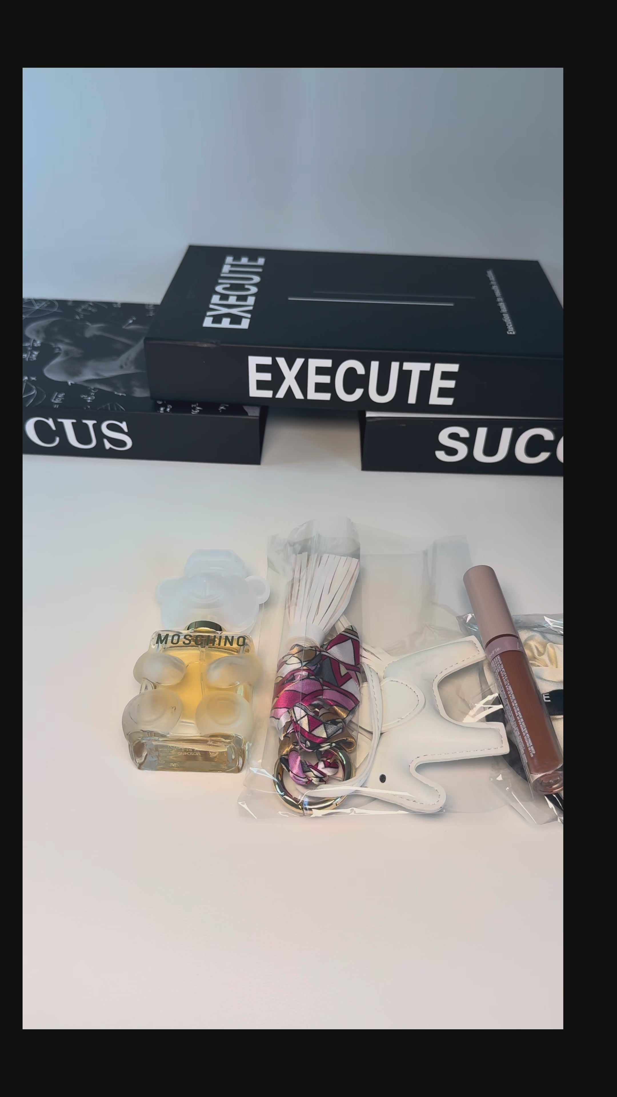 A cute, girly pouch filled with all your soft-girl essentials. Each set includes a mini designer-inspired perfume, lip gloss, hair accessories, key charms, and a stylish pouch to keep